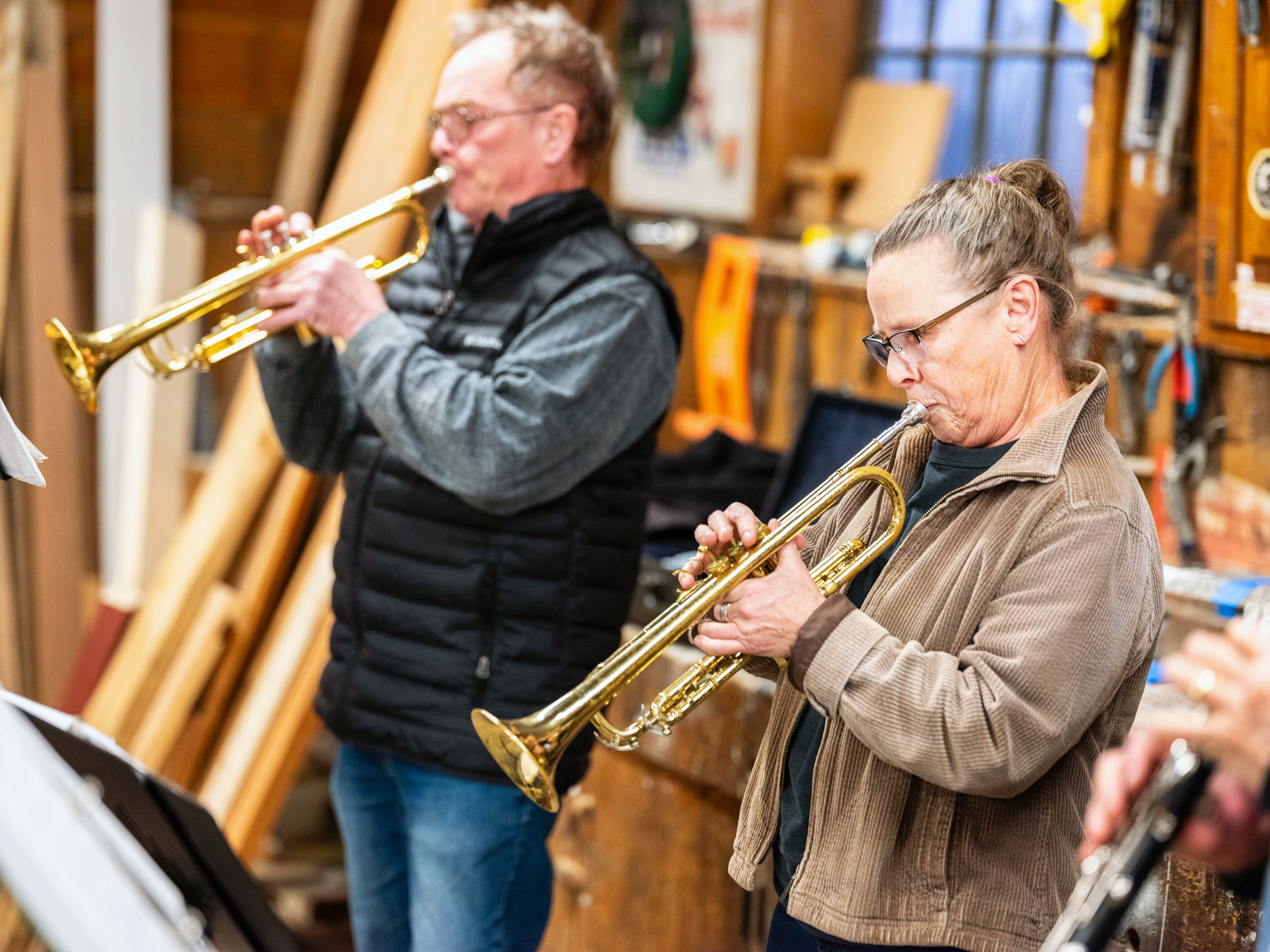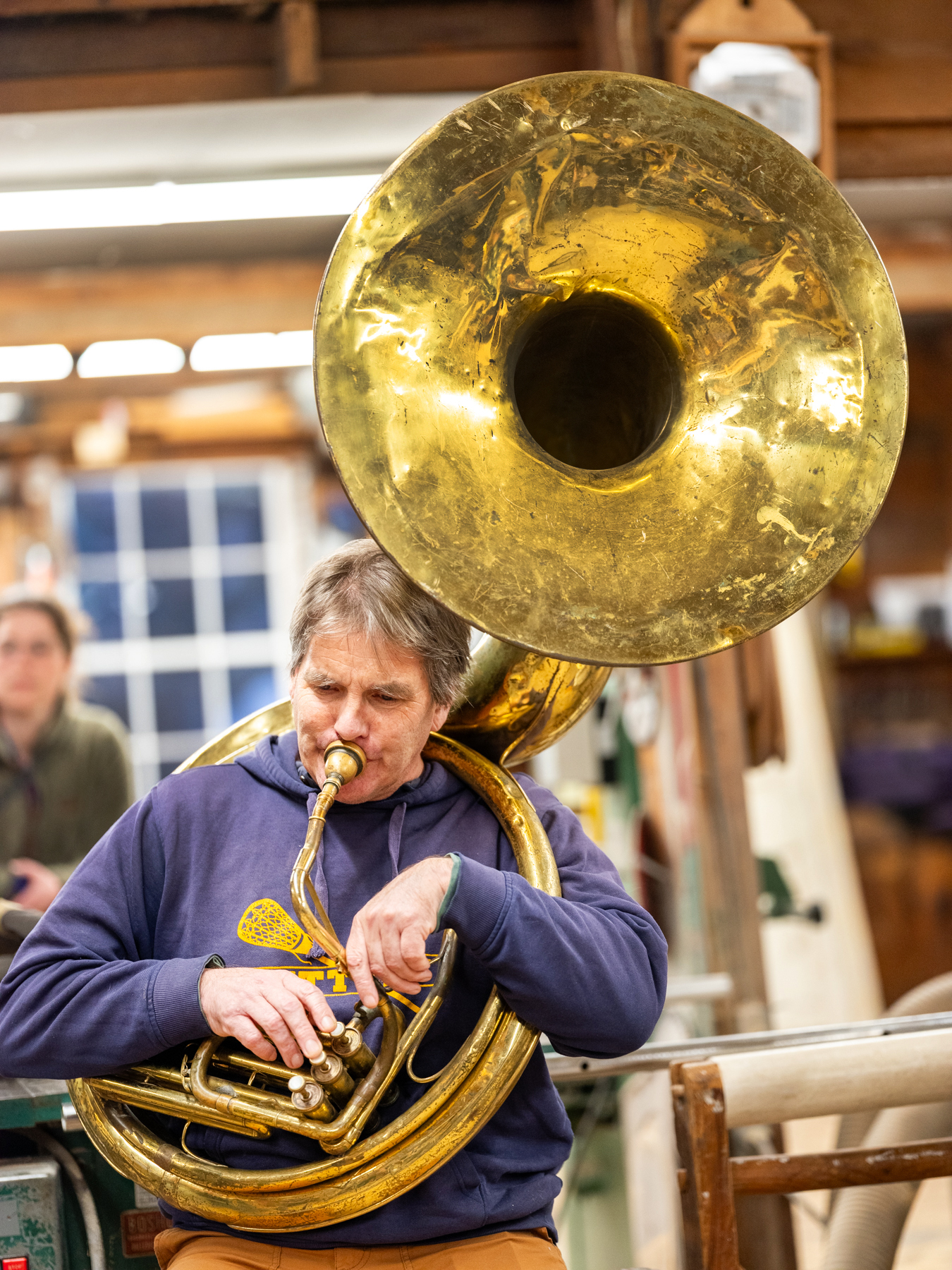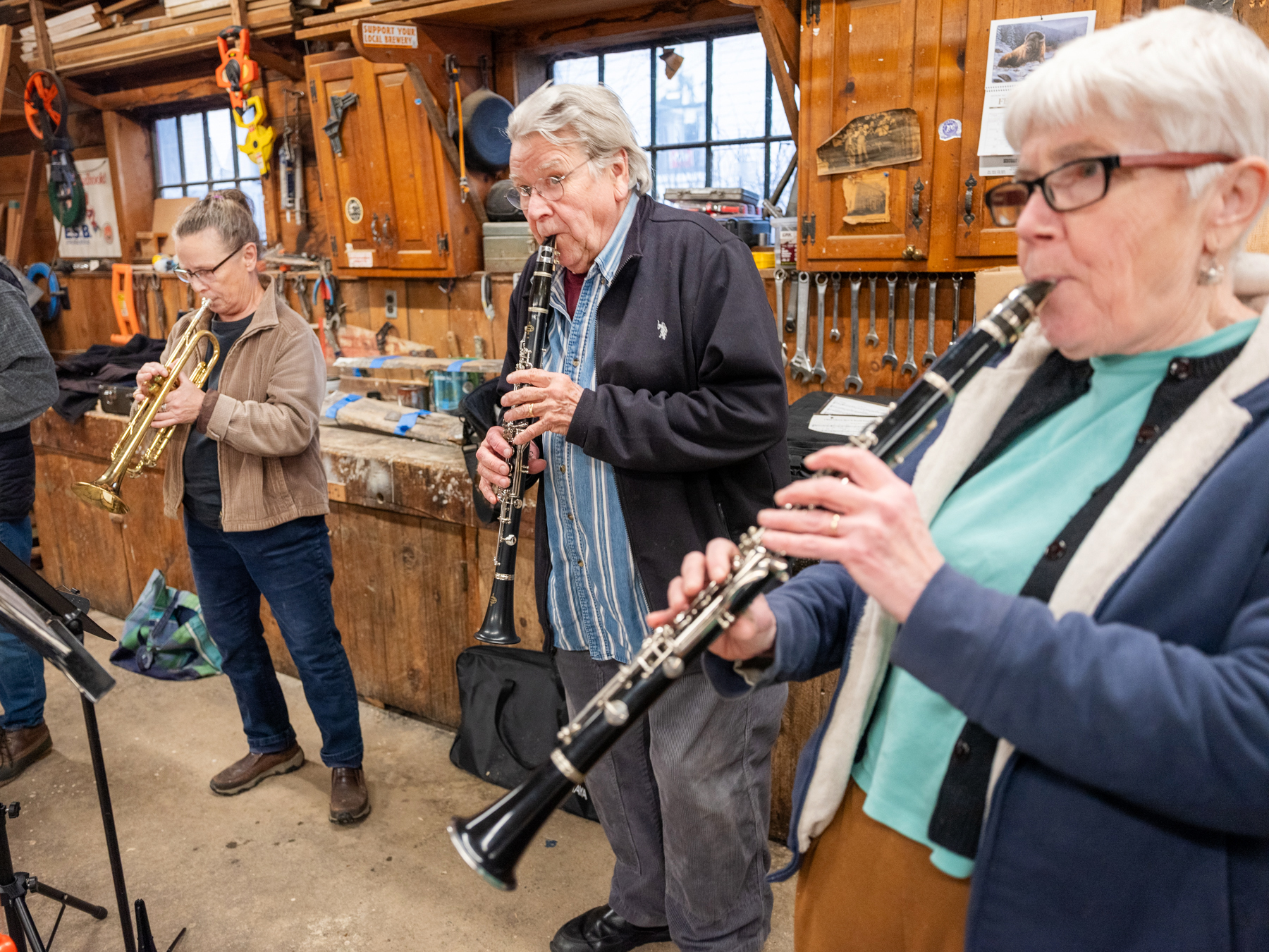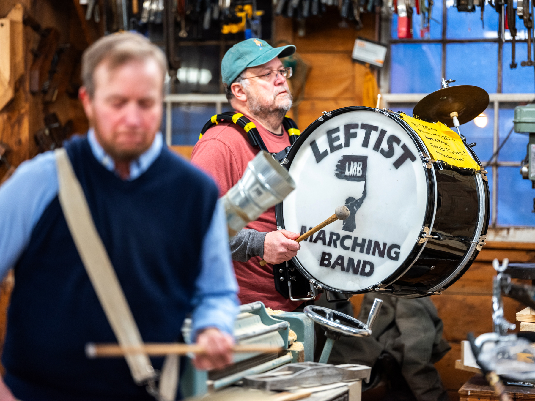 On a brisk March evening, about 17 members had gathered in the Strawbery Banke carpentry shop arranged in a circle. People take turns picking the song and leading the group through it. LMB occasionally writes and plays its own music, but set lists often include pop songs like Lady Gaga’s “Born This Way,” or more serious tunes, like the Italian anti-fascist theme “Bella Ciao.”