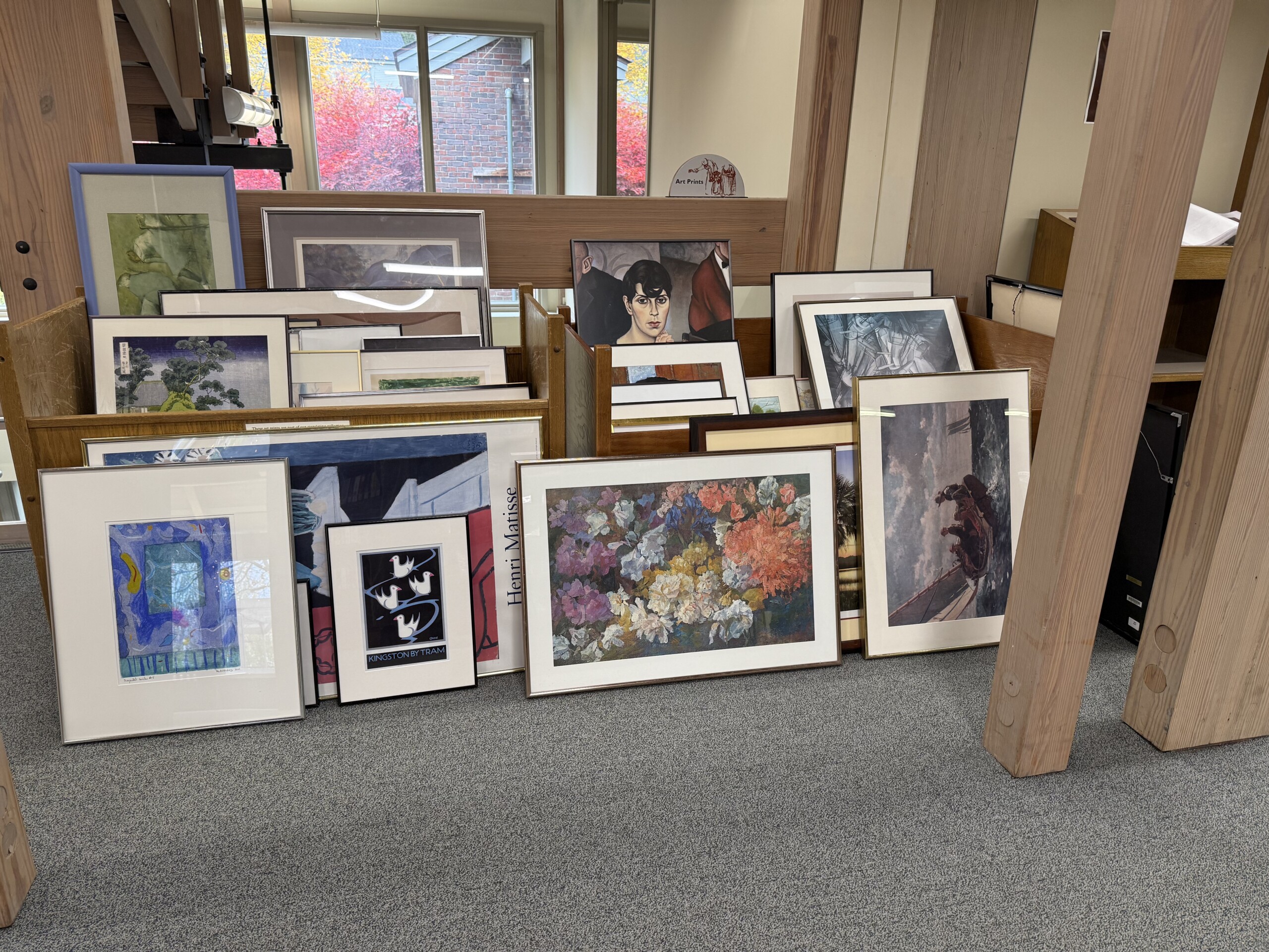 For more than 30 years, the library has loaned framed art prints. Patrons can browse through two large wooden bins near the circulation desk, but they likely won’t see the full scope of the 100-print collection when they do so. At any given time, nearly all of the prints are on loan, Milnes says. Students at the local schools like to rent the prints out to decorate their dorm rooms, as do offices looking to spruce up their workplaces.