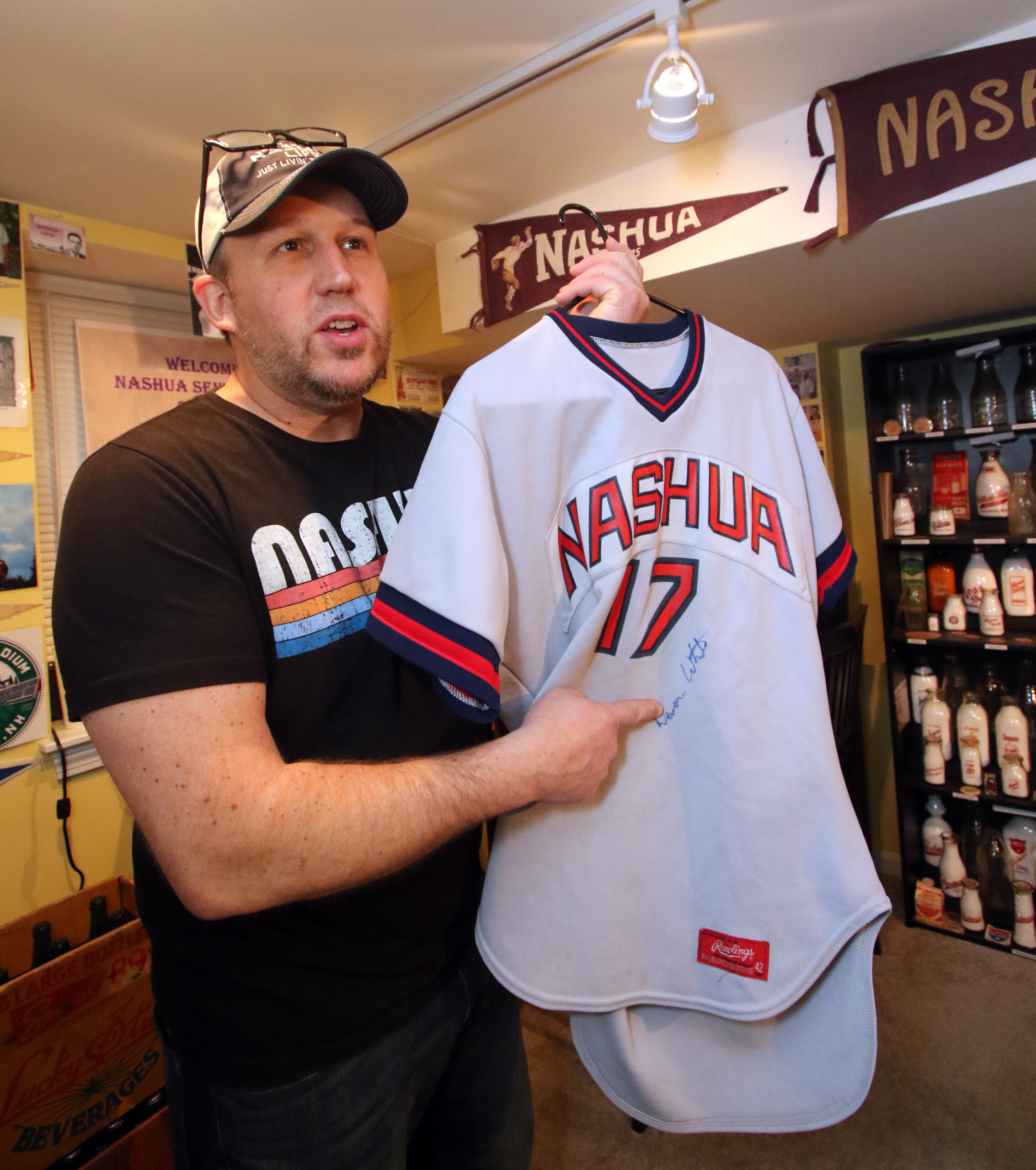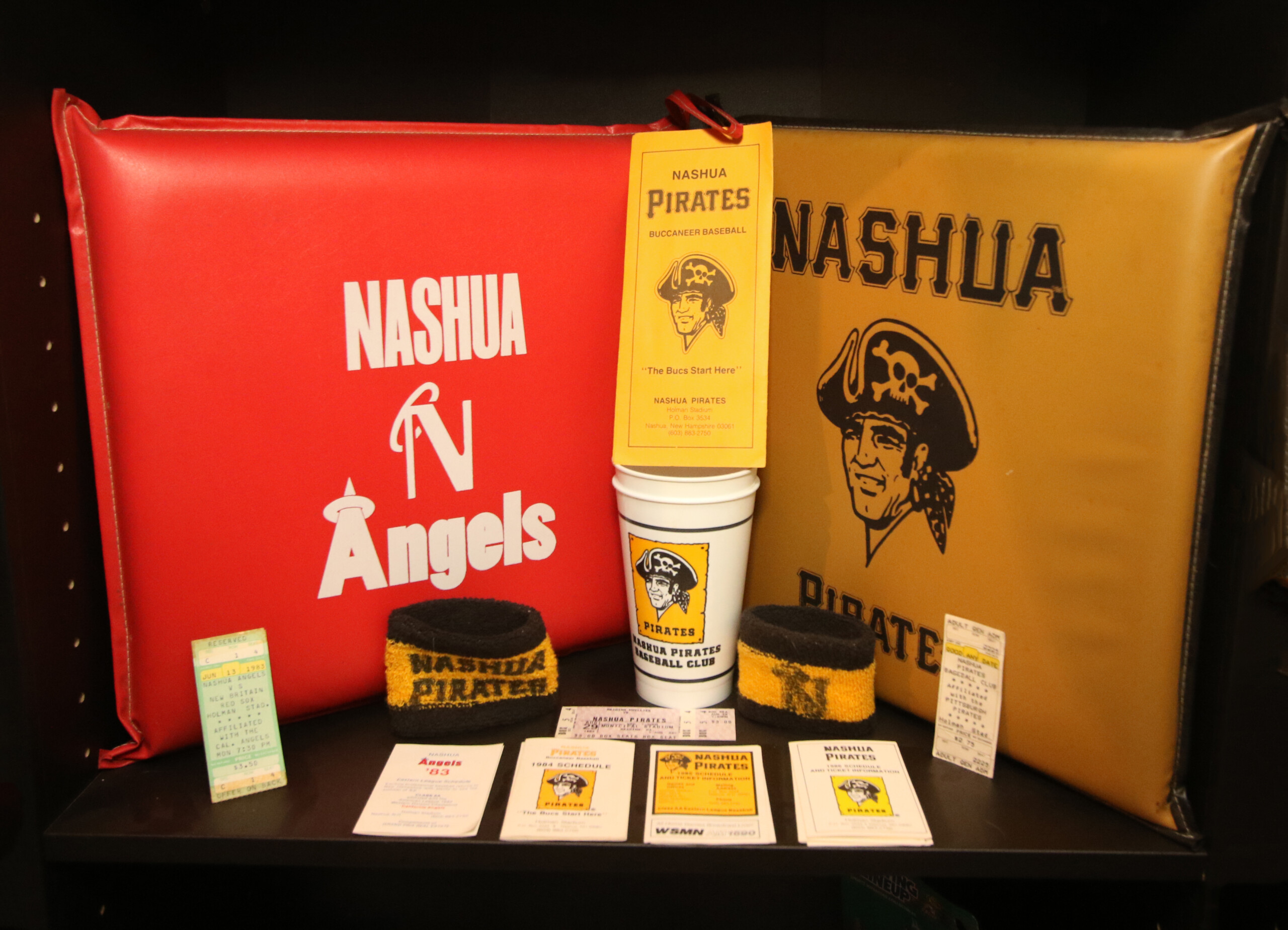 Nashua history buff Craig Michaud has an extensive memorabilia collection from minor league teams that once played at Holman Stadium. Nashua City Hall recently borrowed some of his 1940s Nashua Dodgers items for an exhibit.