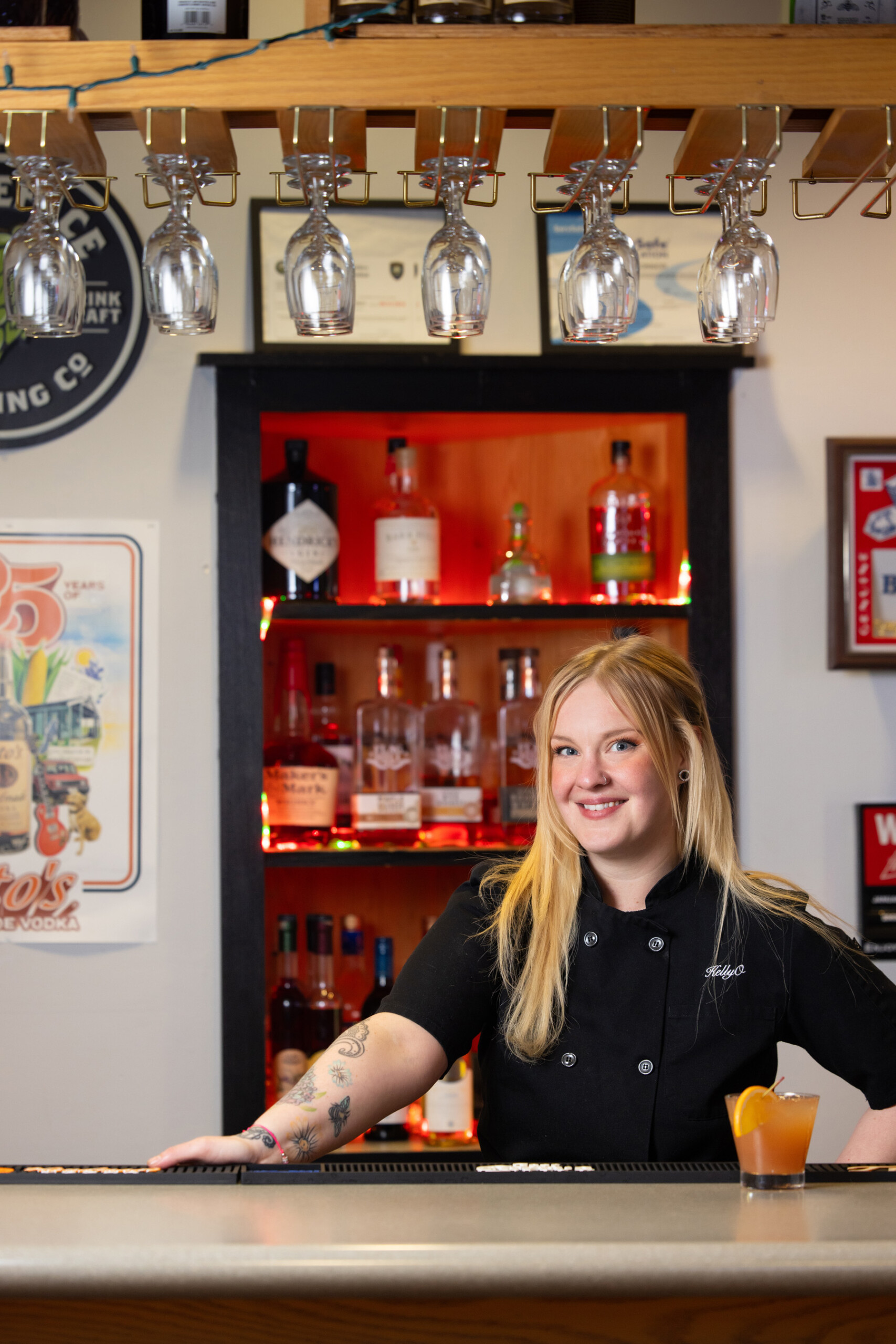 Aces Restaurant & Bar owner and chef Kelly O’Connor is ready to serve you a cocktail to end your day on the course.