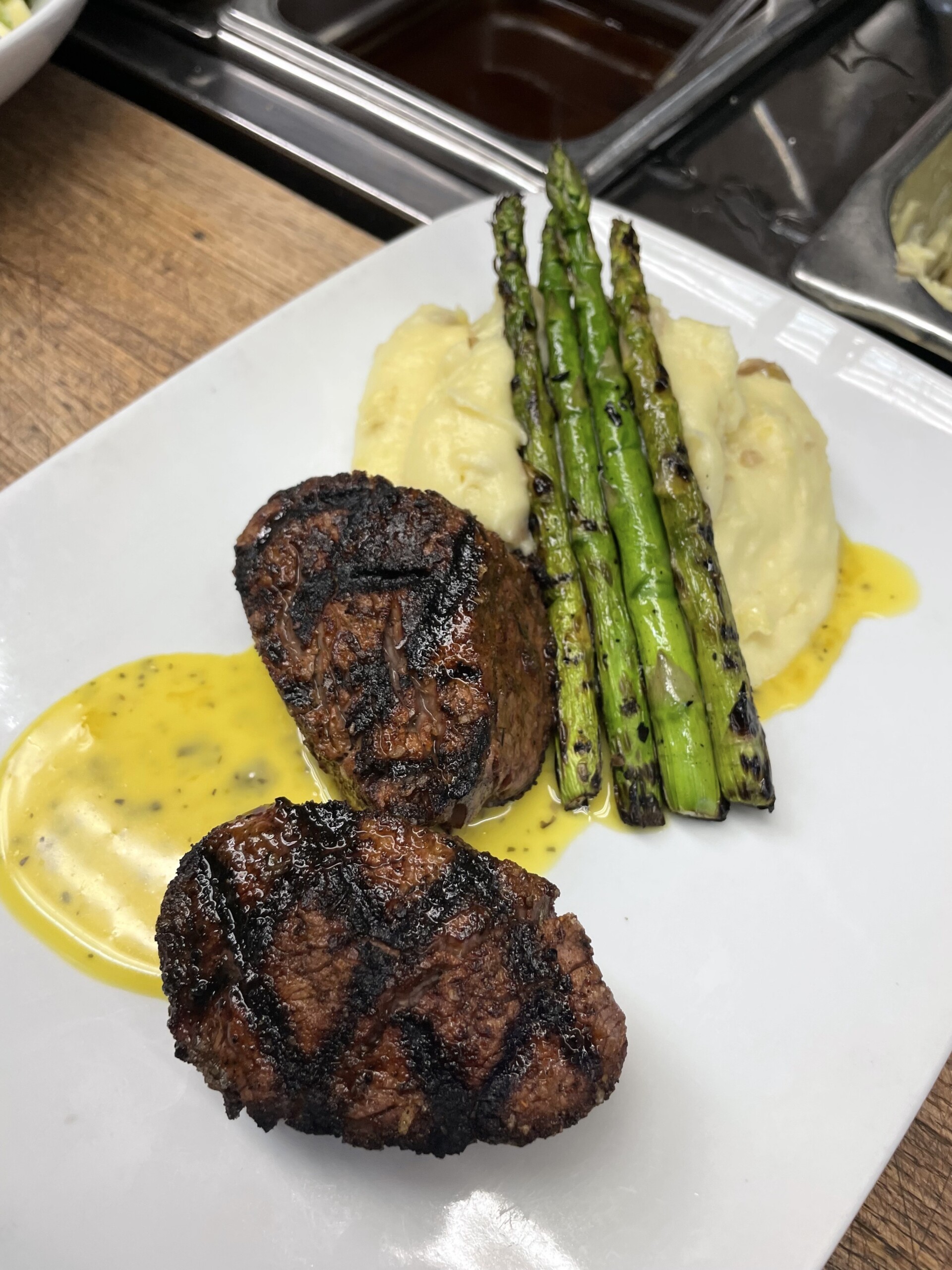 Suna’s popular Filet Mignon comes with a side of creamy mash and grilled asparagus, drizzled with béarnaise sauce. Photo Courtesy Magic Foods Restaurant Group
