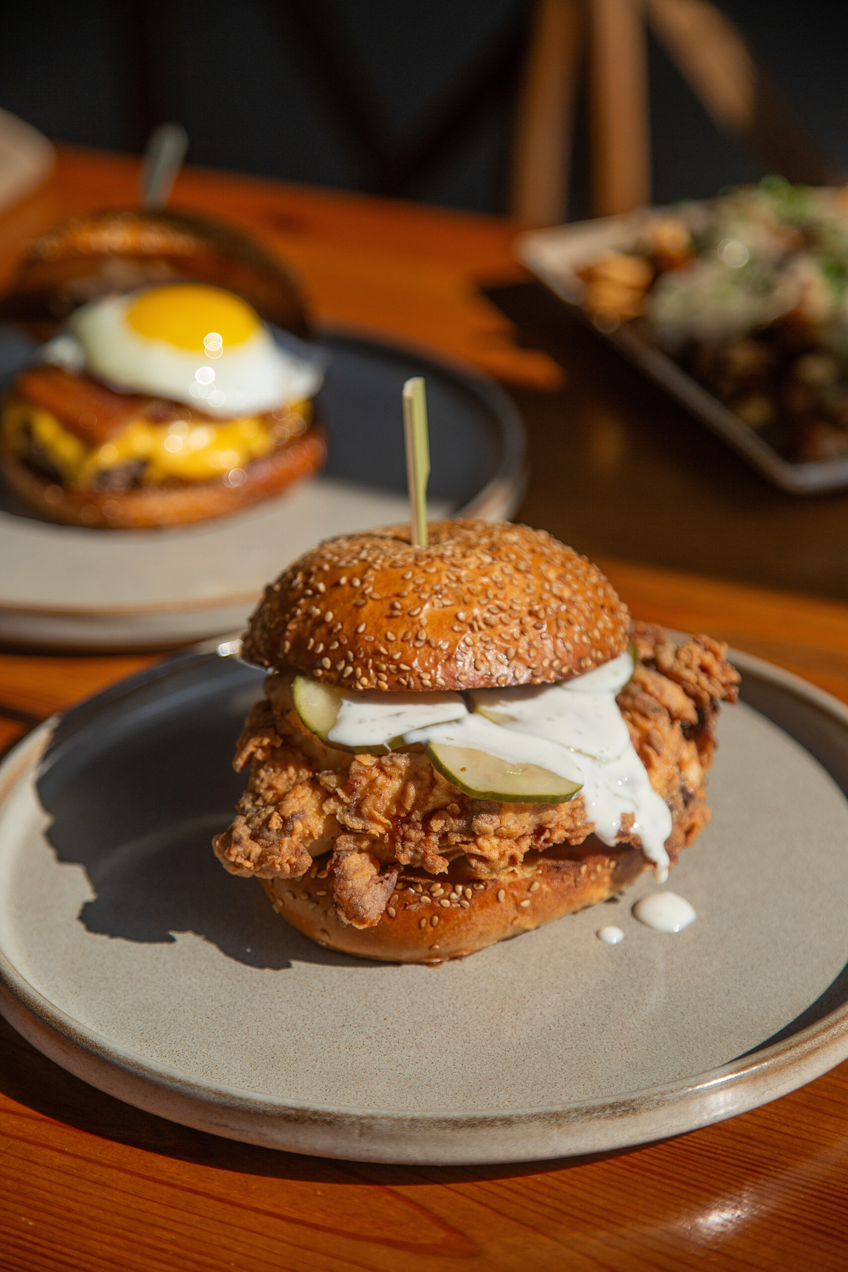 Junction’s Fried Chicken Sand features sweet tea-brined chicken, homemade pickles, and a buttermilk and chive dressing.