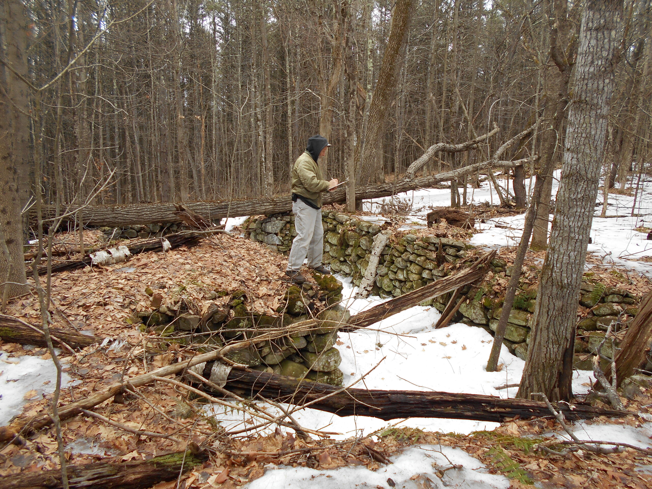 Marshall Hudson explores the cellar hole where the William Maxfield house once stood.